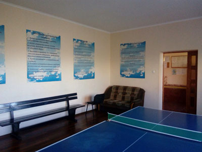 В зале установлен стол для игры в настольный теннис (пинг-понг) для приятного и весёлого провождения свободного времени нашими пациентами. Светлое и уютное помещение способствует более эффективной работе с нашими пациентами на занятиях по программе реабилитационного центра «Твоя Перемога».